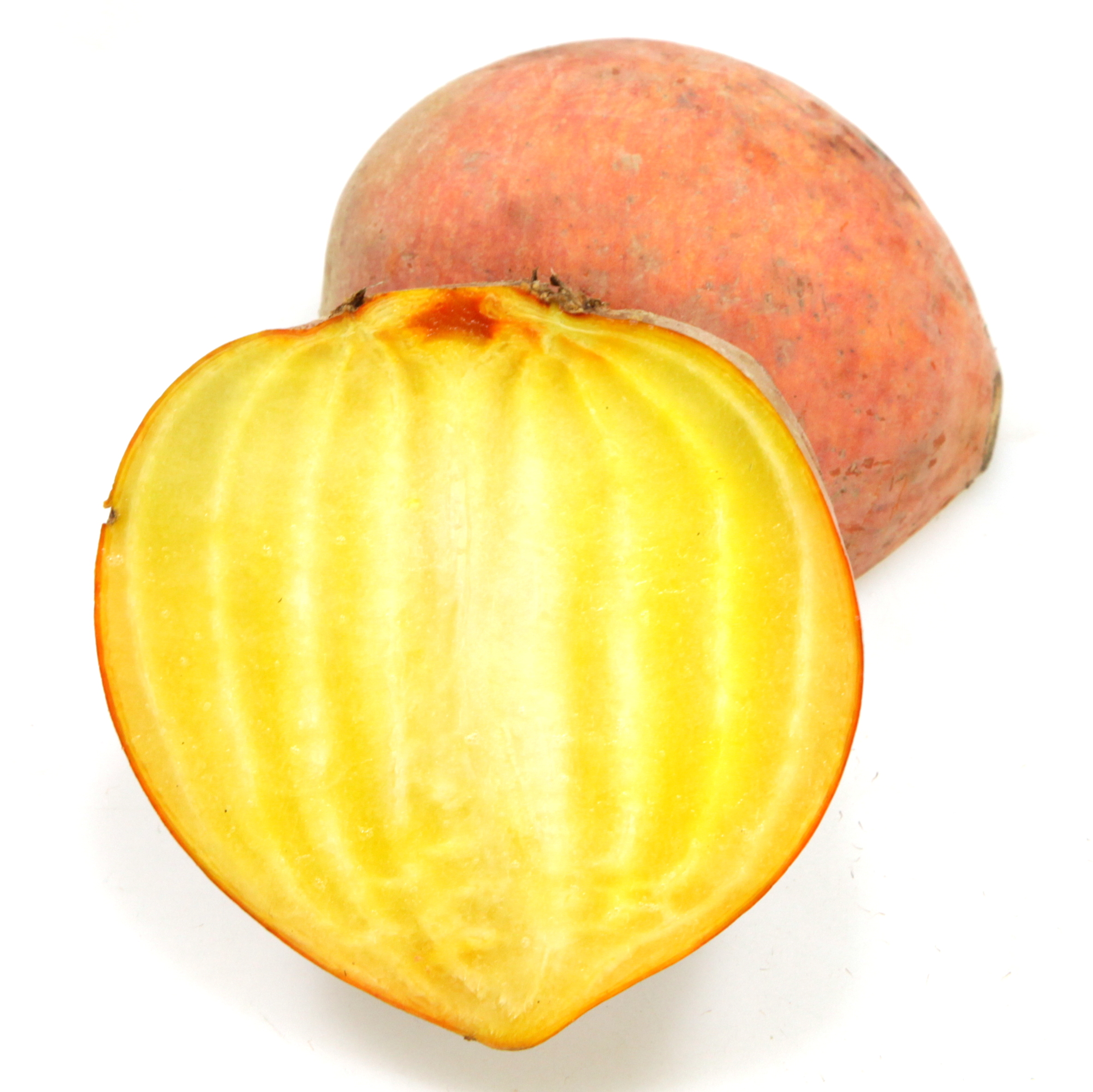 Auch wenn die knalligen gelben Rüben nach einer neuen Züchtung aussehen, handelt es sich um eine alte Sorte. Die gelbe Bete ist eine Variante der roten Rübe, aus der der rote Farbstoff herausgezüchtet wurde. Ihr Fruchtfleisch leuchtet gelb, sie hat ein fruchtig-erdiges Aroma und schmeckt süßer als die rote Bete. Ursprünglich stammt Bete aus dem Mittelmeerraum.