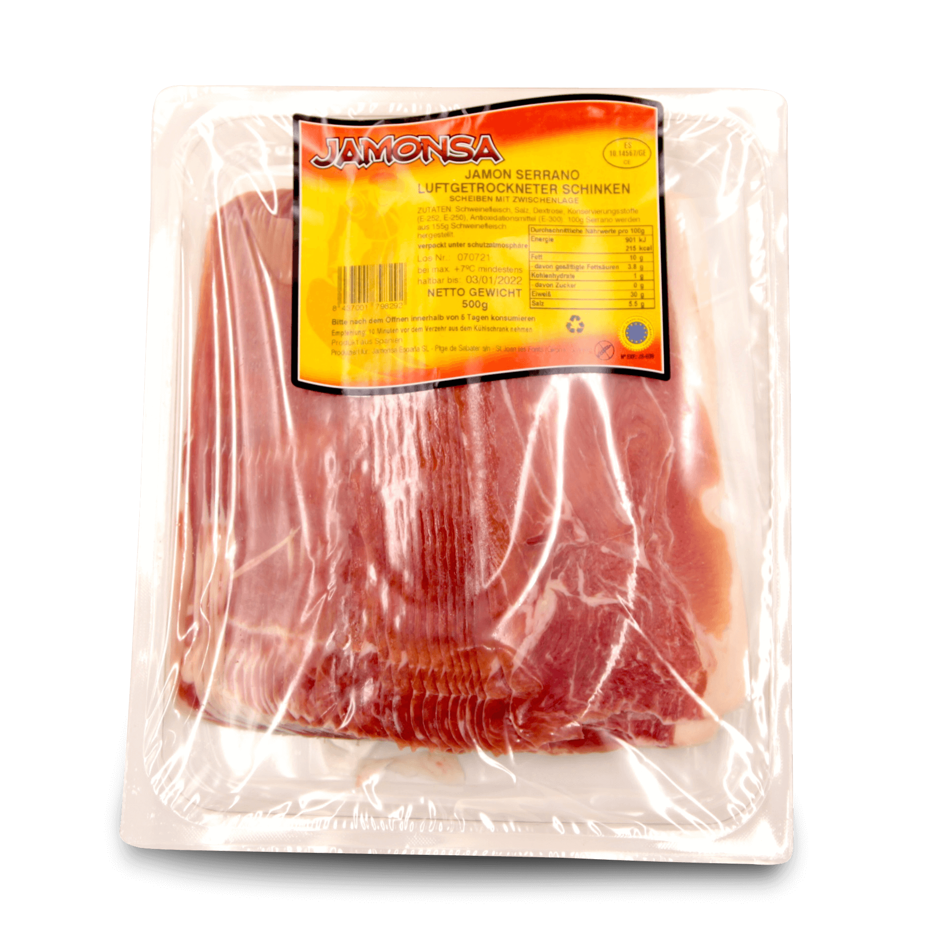 Serrano-Schinken ist ein luftgetrockneter spanischer Schinken. Die Bezeichnung Serrano ist abgeleitet von spanisch 'Sierra', dem spanischen Wort für Gebirge. Ursprünglich reifte Serrano-Schinken an der frischen Bergluft. Seit 1999 ist sein Herstellungsverfahren EU-weit als garantiert traditionelle Spezialität geschützt.
