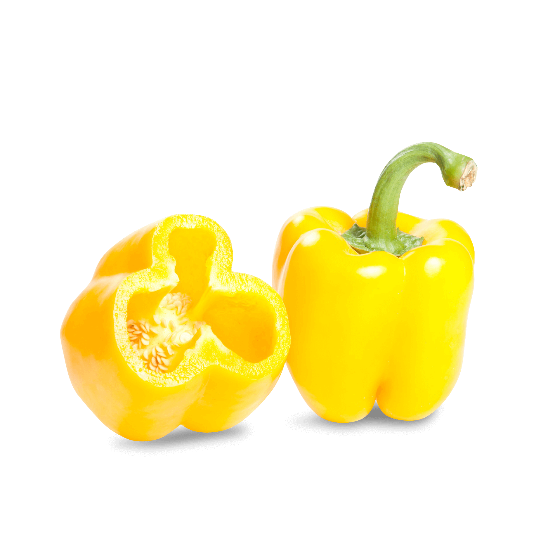 Paprika gibt es in unterschiedlichen Farben und Formen. Diese glockenförmige Gemüsepaprika hat sowohl eine gelbe Schale als auch gelbes Fruchtfleisch und schmeckt leicht herb und sehr mild. Ihre zahlreichen, kleineren Verwandten wie die Peperoni oder die Chili sind deutlich schärfer und werden eher als Gewürz verwendet denn als Gemüse.