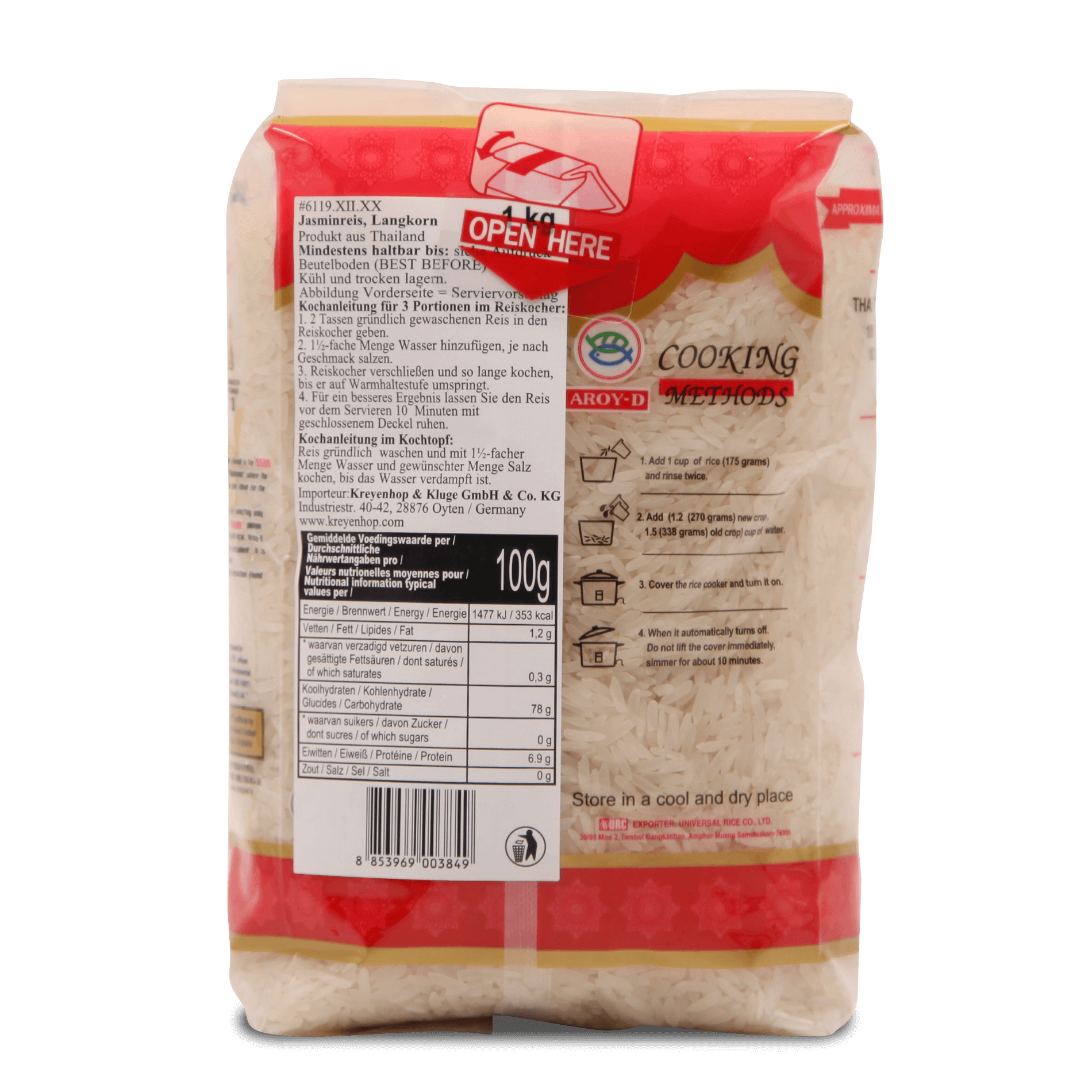 Da er nach dem Kochen leicht klebrig ist, erfreut er sich besonders in der Thailändischen Küche großer Beliebtheit. Aufgrund seines leichten Eigengeschmacks ist diese Reissorte besonders gut als Beilage zu Curry-, Fleisch-, und Fischgerichten geeignet. Jasminreis schmeckt aber auch in Salaten und Süßspeisen toll!