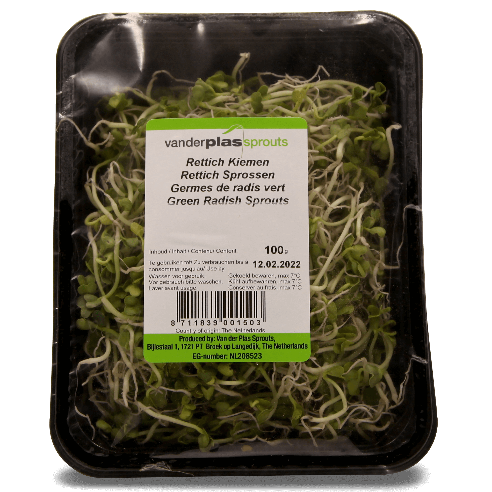 Bei Sprossen - auch Sprossengemüse oder Keimsprossen genannt - handelt es sich um ein Gemüse, das sich in seinem Entwicklungsstadium irgendwo zwischen Sämling und Jungpflanze befindet. Es gibt eine Vielzahl an Gemüsepflanzen, deren Keimsprossen eine wahre Delikatesse sind. Die Rettichsprossen sind gekeimte Sprossen des weißen Rettichs und erinnern optisch an feine Fäden, hell-lila bis violett. Sie schmecken ähnlich wie weißer Rettich und sind relativ scharf.