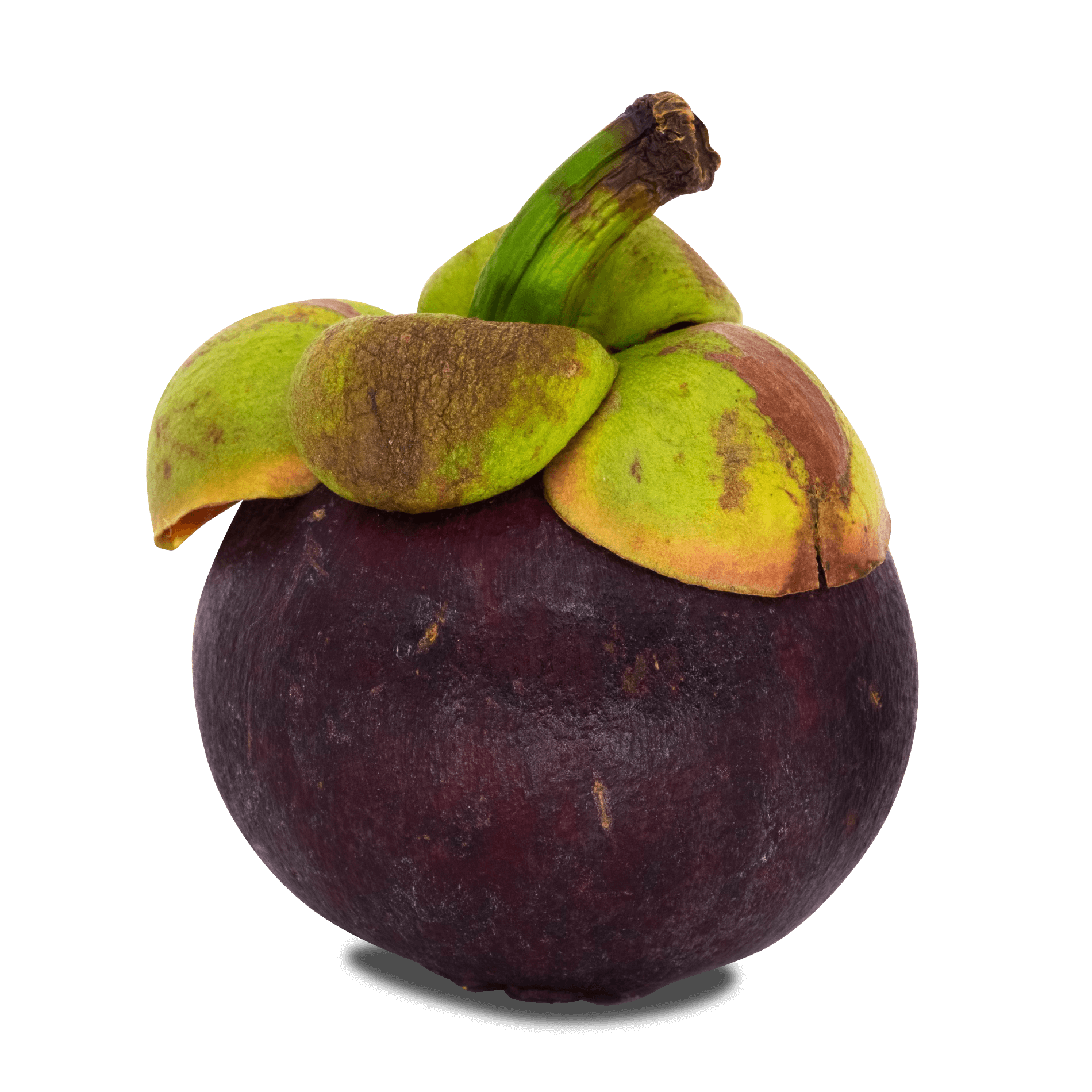Mangostan ist die Frucht eines tropischen Baumes, die hierzulande (noch) weniger bekannt ist. Optisch sieht sie auch etwas sonderbar aus: Die Früchte weisen an der unteren Seite vier derbe, beständige Kelchblätter auf und oben an der Spitze sind ledrige Narbenreste vorhanden. Die Schale ist relativ dünn, purpurfarben bis dunkel-purpurrot, relativ glatt, kahl und manchmal mit gelblich-braunen Flecken versehen.